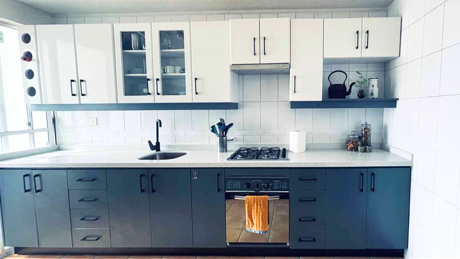 En este proyecto, transformamos una cocina preinstalada de un típico apartamento en la capital santiaguina, le dimos estilo más moderno, fresco y contemporáneo, cuidamos cada detalle.Esto incluyó la instalación de nuevos tiradores, bisagras y mecanismos que aportan un toque de interés visual.